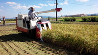 コンバインを低速で丁寧に刈り上げる為、かなりの時間がかかっています。刈ったお米はすぐに籾乾燥機に入れ、水分を多く含んでいるので乾燥させないとお米本来の香りと旨味(甘味)を出す事が出来ません。刈り取った稲をすぐに乾燥機に入れる事が重要になります。今年は去年に比べると収穫量が減りますが例年通り、噛めば噛む程に旨味のあるもちっとした食感のお米が出来ました。皆様のご注文をお待ちしております。