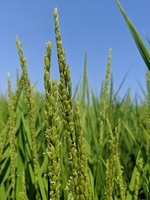 | 夏空の下で辻農産特撰米に花が咲きました。 |