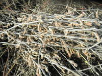 午前中は黒大豆の刈り取り。黒豆も大豆もコンバインを頼むほどの面積じゃないので、草刈り機で刈り倒して、ビニールハウスで一時保管です。