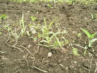 雑穀畑の方は芽が小さいので、中耕した土で埋もれてしまわないか、神経を使いながら作業しました。