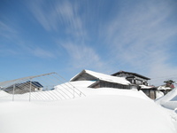 母屋はと作業小屋、車庫はトタン屋根で勝手に雪が落ちるのですが、昔の古い小屋がセメント瓦で雪が積もり放題なので、まあ、シーズン3〜4回くらい雪下ろししなければならないのです。