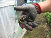 ヤバイ、骨が曲がってしまうと、あわててスコップで骨組みの掘り出し作業。