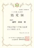 認定は一年ごとに行っており、栽培マニュアルの遵守がなされない場合などには翌年は認定されないなど、高品質のつや姫生産が行われるように意を用いております。