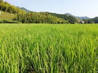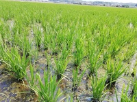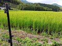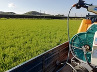 つくしロマンの出穂が完了したので今朝の作業は塩の散布からやりました。大雨による浸水にも負けずに元気に育ってます😀