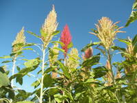 空はもう完全に秋の彩り。キビもアワもアマランサスもだんだん穂が大きくなってきた。