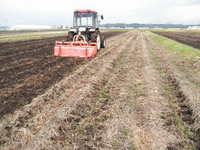 追いつこうとは思わないけれども、大雪で作業開始が遅れただけに、のんびりと作業するわけにもいきません。朝からはじめて、日が暮れる前になんとか田起こし作業全部完了しました。