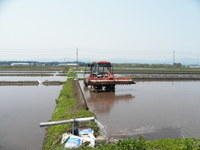なんとか代かきが一段落し、今日は浮いてきて畔際に溜まっている藁を引き上げる作業。 やっと機械作業から解放された。と、喜んだのもつかの間、レーキを使って浮いている藁を畔に引っ張り上げる単純な作業ながら、かなり疲れました。背中の筋肉がパンパン。 明日の午後辺りからちょっと田植えをはじめてみようかと思っています。 それにしても、全然休んでないなあ。温泉行きたいなあ。