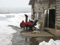だもんで、除雪作業に切り替え、米保冷庫の屋根の雪下ろし。そしてビニールハウス周りを除雪機で除雪。