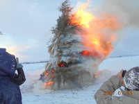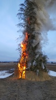 厳寒の正月が過ぎ晴れの広がる1月10日さいのかみがありました。鈴木農園の約1反分の藁でとばを編み、作ってあります。五穀豊穣、無病息災を願い大勢の人たちが集まり最後にするめを焼いていただきました。