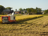 | 古代米の稲刈 |