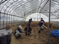 新潟の外は雪化粧ですがハウスの中で農家の仲間としめ縄づくりをしました。もちろん我が家の有機はざ架け米のわらです。