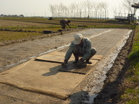 4月13日新潟でも桜の花が咲くころ例年通りすじまきをしました。鈴木農園ではビニールハウスは使わずポット苗を田んぼに並べます。自然の土の温度で芽が出ます。鳥さんに食べられないようワリフを上にかけておきます。苗箱を手渡してひとつずつ並べる作業はスクワットの連続そのものです。育ち具合で田植えの日程が決まりますがおおむね40日くらい後です。順調に育ちますように!祈るばかりです。