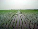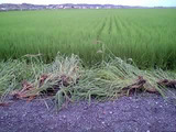一見普通の田んぼと代わりがないように見えますが、紙マルチ(5月24日付農場だより参照)を敷いています。田んぼに近づいてみると紙がまだ敷かれているのが分かります。そろそろ分解が進んでなくなってきます。そうなると除草剤等の化学薬品を使っていない田んぼなので雑草が生えやすくなってしまいます。とは言ってもそれまでに稲も生長するので、生え放題、というまではいかないんですけどね。
