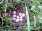 田んぼのあぜ道を除草していると、突然カモがぐゎーぐゎーと騒ぎながら逃げていきました。やけに騒ぐなあと作業を進めていくと、ありました。カモの巣。中には小さな卵が9個。がんばってあたためていたんですね。ちょっと申し訳ないかなと思いつつ写真に撮って、巣の周辺は除草せずにそっとしておきました。