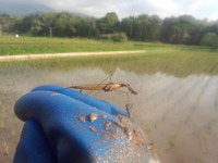 イネドロオイムシ捕獲の デロかごを振っていたときの写真です。