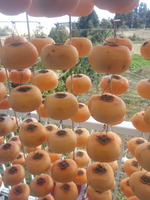 当園、秋から稲刈り>柿もぎ>干し柿作りと