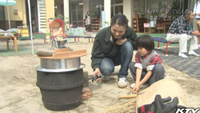 「初めての羽釜ご飯。元気にはしゃぐ声が響きます。