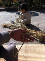 保育園で新米の収穫祭。