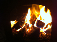 都会では聞かれなくなった薪のはぜる音。