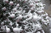 満開の沈丁花も雪をかぶり、とっても寒そうです!