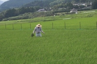 化学肥料を一切使わないので、この作業は無農薬栽培ならではです。ですから、他の農家の方から「何をまきよると?」とか聞かれます。