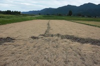 稲刈りは田をぐるぐる回って進むので、終わったあとはわらが落ちていない部分がYの字を二つくっつけたように残ります。