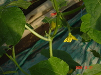 昨日から、台風一過でようやくお日様がでてきました。久し振りの太陽の光に少しキュウリの木もビックリ、戸惑ったようでしたが、午後からは、慣れたようで元気を取り戻し、花を誇らしげに咲かせました。