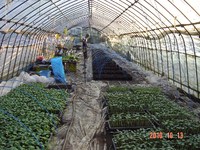 前回の農園だよりで、ご紹介した越冬キュウリが収穫できるようになりました。9月7日に種を播いて約2カ月収穫がはじまりました。1本の本枝から4本の側枝を伸ばして育てます。本枝は、11〜13節で止めてしまい、4本の側枝をどんどん伸ばして収穫します。『つる下ろし』という技法です。上手に管理すると、最後まで、真っすぐで良いキュウリが収穫できます。もちろん安全で厳しい生産管理と記帳、検査員の訪問審査をうけながら、より高品質で安心、美味しいキュウリを栽培して行きます。(^^ゞ