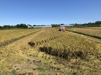 幸い稲は倒れていませんので、天候が回復次第に稲刈りを再開いたします。