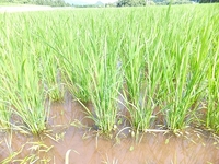 写真は、無肥料栽培の田んぼの稲です。相変わらずスカスカですが、稲は元気に育っています。