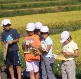 伊那小学校4年生が、白毛もち米の田んぼを見学に来ました。
