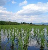 白毛もち米の上伊那農民組合です。連休中は、霜のつくほど寒い朝もあったのですが、連休あけから、急激に気温が上がる日もあり、なんだかんだで、白毛もち米とコシヒカリの田植えがはじまりました。水をはった田んぼに美しい信州の青空が映えます。