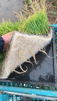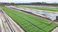 じっくり育てた苗は苗箱から取れないほど、例年以上に良い根張りです。