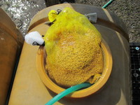 さて、今年度も米作りが始まりました。まずは、温湯処理(殺虫剤、殺菌剤等未使用)をした種もみを水に着けています。この後、保温器に入れ芽を出します。